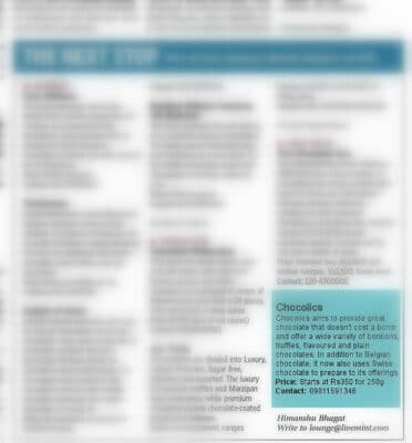 Chocolics Chocolates has been covered in various well known publishings. Below are a few-