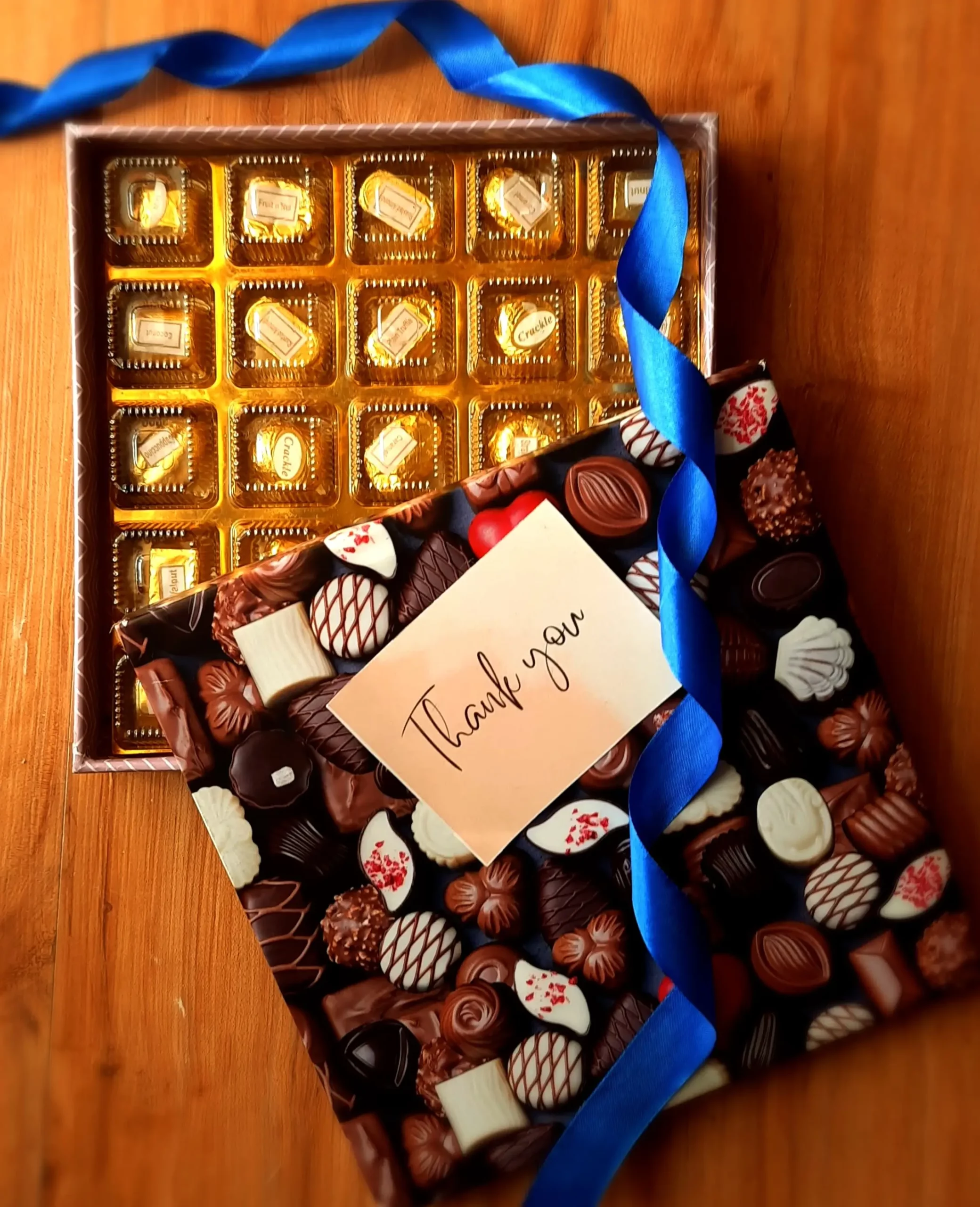 - Assorted Chocolate Gift Boxes – A mix of dark, milk, and white chocolates